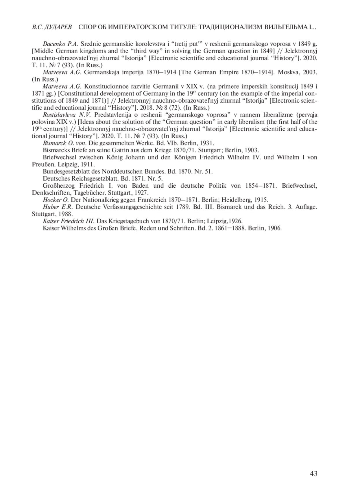 2. Даценко П.А. Средние германские королевства и “третий путь” в решении германского вопроса в 1849 г. // Электронный научно-образовательный журнал “История”. 2020. Т. 11. № 7 (93). С. 19. EDN: TRNAWI