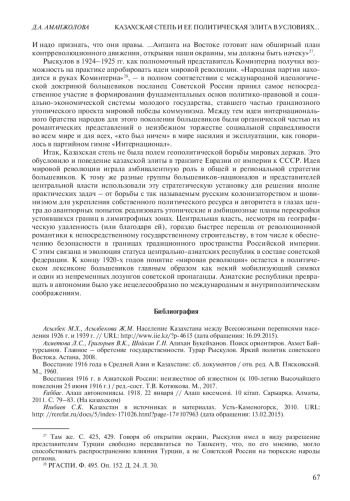 10. Россия и Центральная Азия. Конец XIX - начало XX века: сб. документов и материалов / сост. Д.А. Аманжолова. М., 2017.