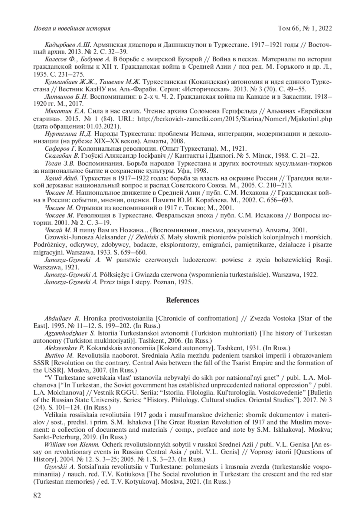 Статья: РУССКАЯ РЕВОЛЮЦИЯ В ТУРКЕСТАНЕ ГЛАЗАМИ ОЧЕВИДЦА: "КРАСНО"-"БЕЛЫЕ" ВОСПОМИНАНИЯ АЛЕКСАНДРА ГЗОВСКОГО (2022)