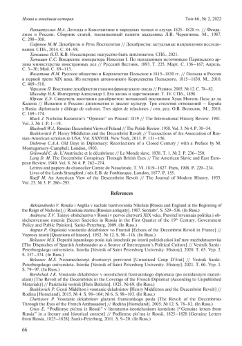 36. Филатова Н.М. Русское общество и Королевство Польское в 1815-1830 гг. // Польша и Россия в первой трети XIX века. Из истории автономного Королевства Польского. 1815-1830. М., 2010. C. 469-518. EDN: TDJUVH