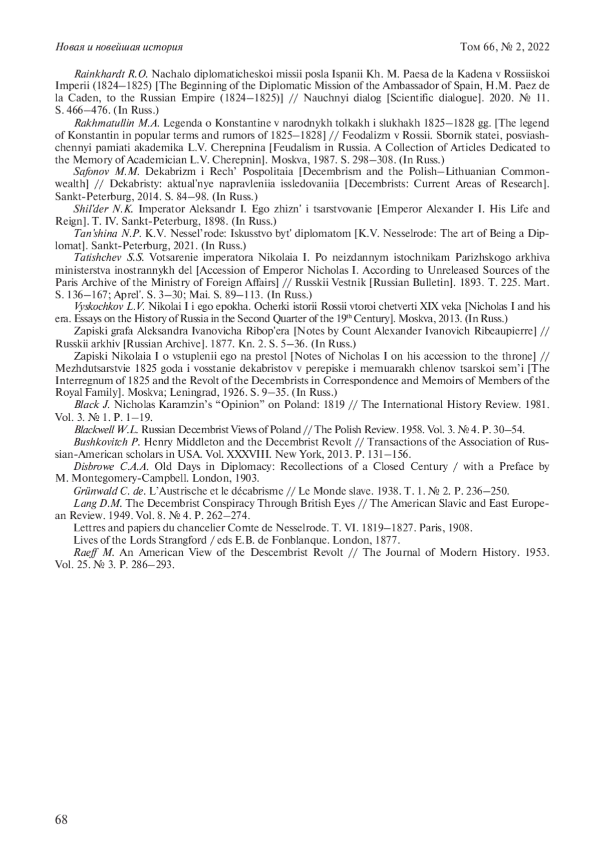 48. Raeff M. An American View of the Descembrist Revolt // The Journal of Modern History. 1953. Vol. 25. № 3. P. 286-293.