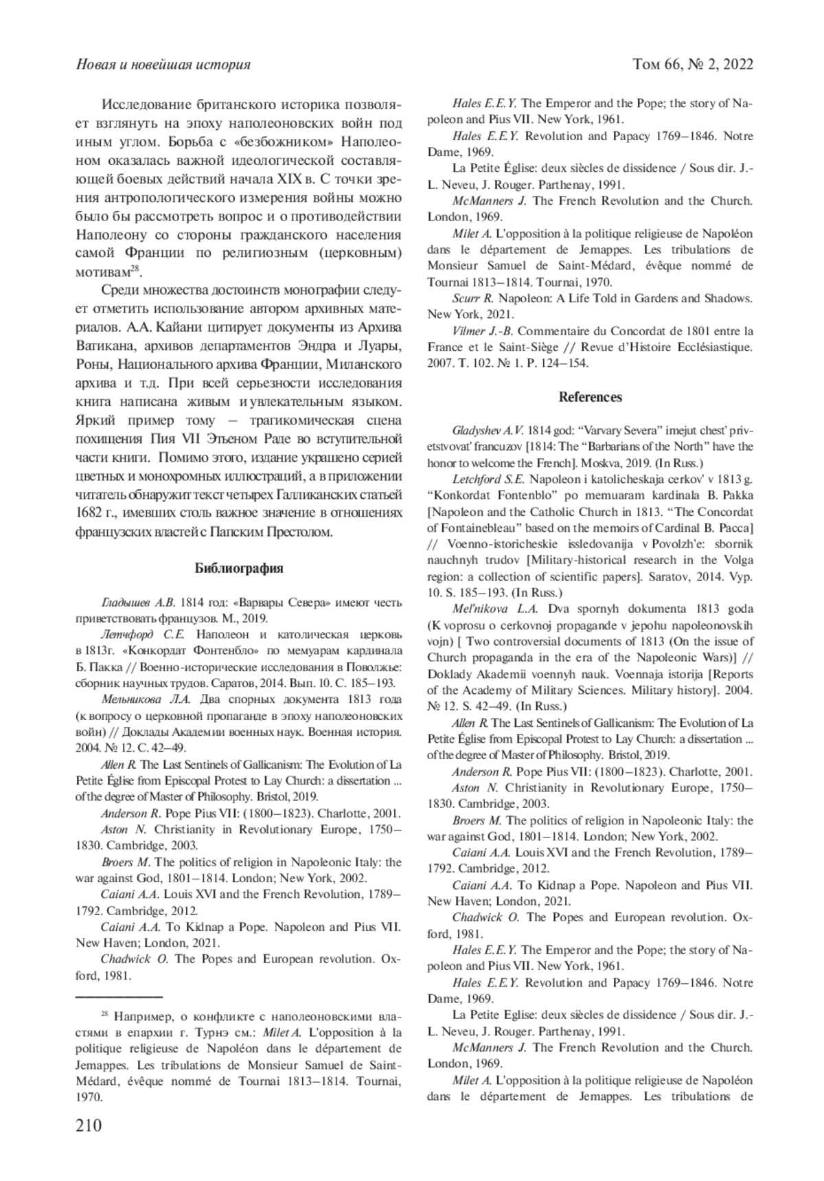 2. Летчфорд С.Е. Наполеон и католическая церковь в 1813 г. “Конкордат Фонтенбло” по мемуарам кардинала Б. Пакка // Военно-исторические исследования в Поволжье: сборник научных трудов. Саратов, 2014. Вып. 10. С. 185-193.