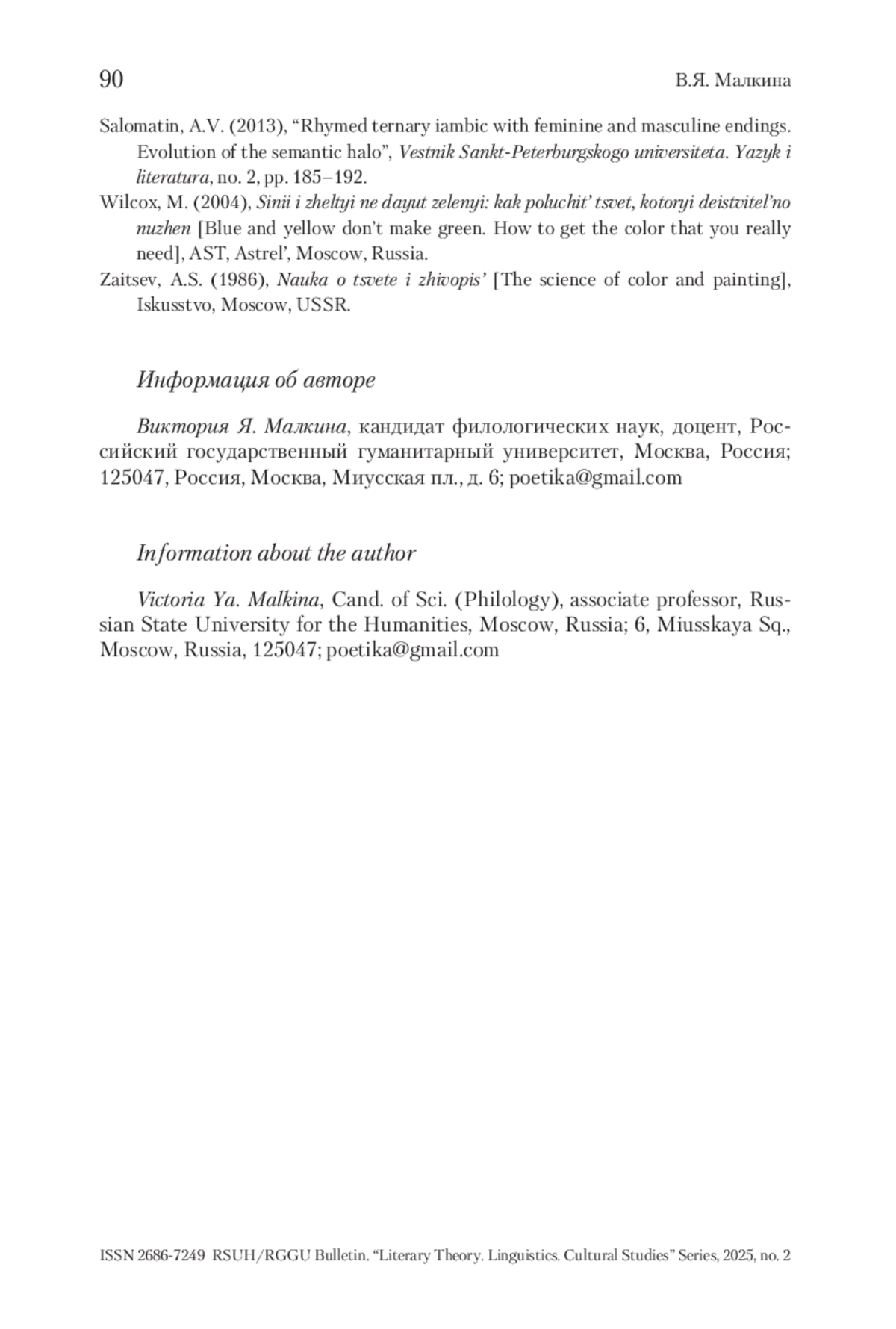 Журнал: ВЕСТНИК РГГУ. СЕРИЯ «ЛИТЕРАТУРОВЕДЕНИЕ. ЯЗЫКОЗНАНИЕ. КУЛЬТУРОЛОГИЯ»