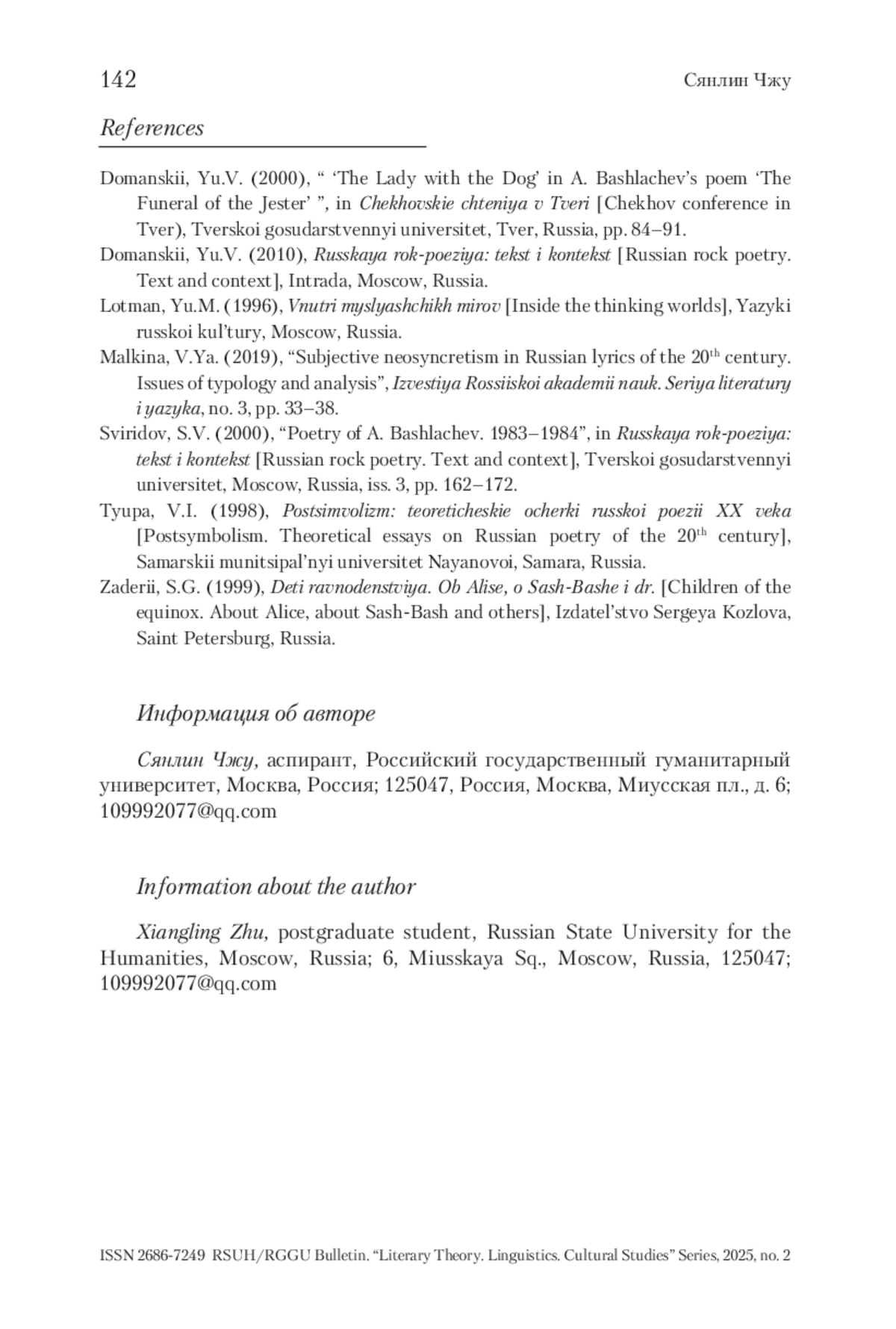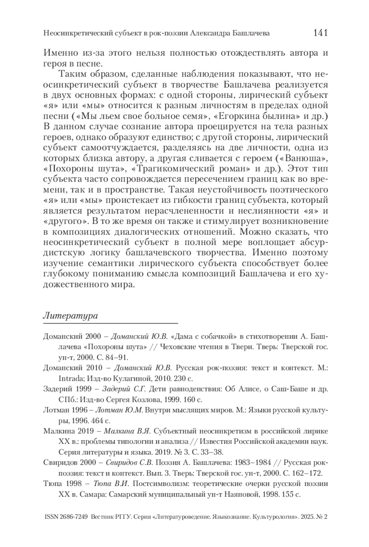 2. Доманский 2010 - Доманский Ю.В. Русская рок-поэзия: текст и контекст. М.: Intrada; Изд-во Кулагиной, 2010. 230 с.