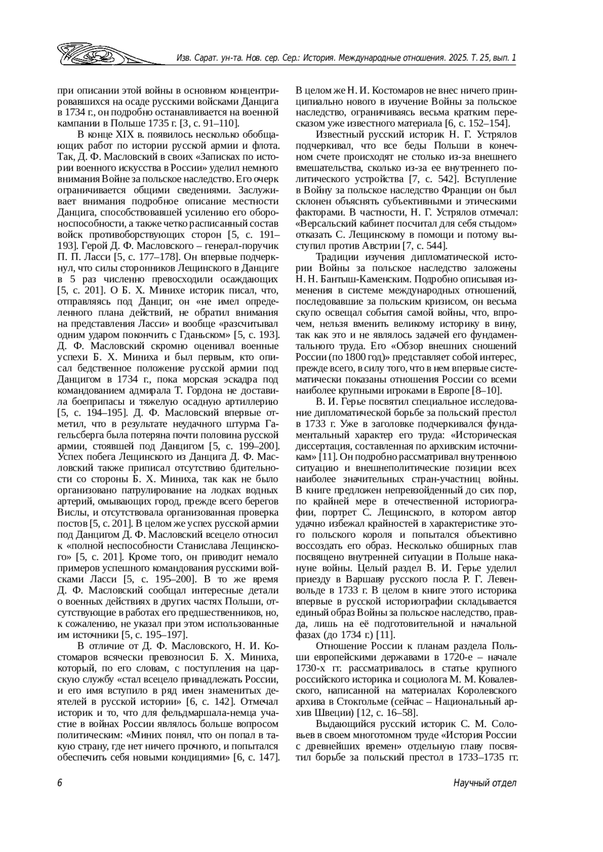 СТАНКОВ К. Н. ВОЙНА ЗА ПОЛЬСКОЕ НАСЛЕДСТВО В ОТЕЧЕСТВЕННОЙ ИСТОРИОГРАФИИ XIX - НАЧАЛА XXI ВЕКА // ИЗВЕСТИЯ САРАТОВСКОГО УНИВЕРСИТЕТА. НОВАЯ СЕРИЯ. СЕРИЯ: ИСТОРИЯ. МЕЖДУНАРОДНЫЕ ОТНОШЕНИЯ. 2025. Т. 25 № 1