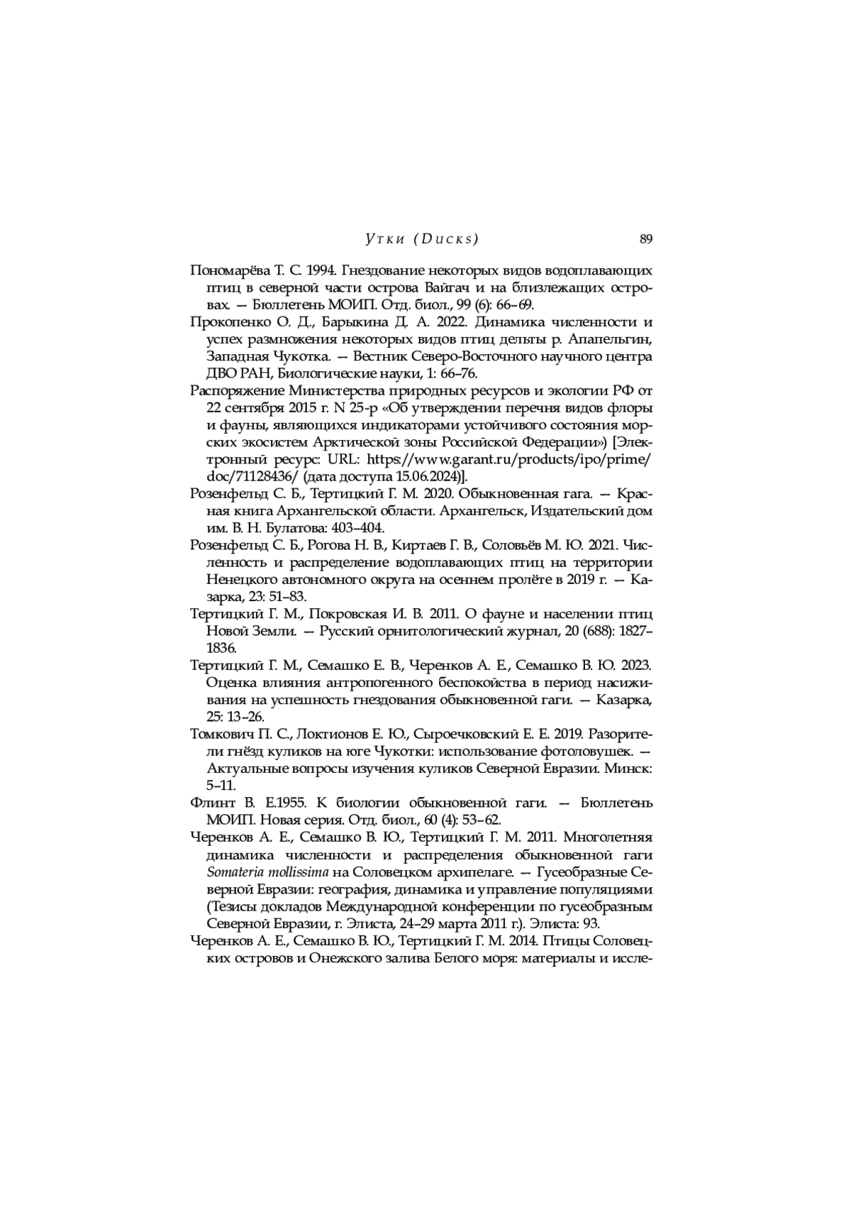 22. Розенфельд С. Б., Тертицкий Г. М. 2020. Обыкновенная гага. - Красная книга Архангельской области. Архангельск, Издательский дом им. В. Н. Булатова: 403-404.
