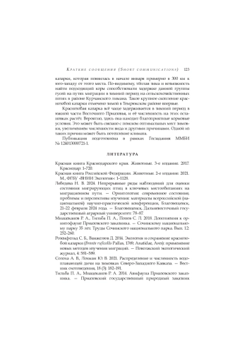 Статья: ОСТАНОВКА КРАСНОЗОБОЙ КАЗАРКИ ЗИМОЙ НА ЮГЕ ВОСТОЧНОГО ПРИАЗОВЬЯ (2024)