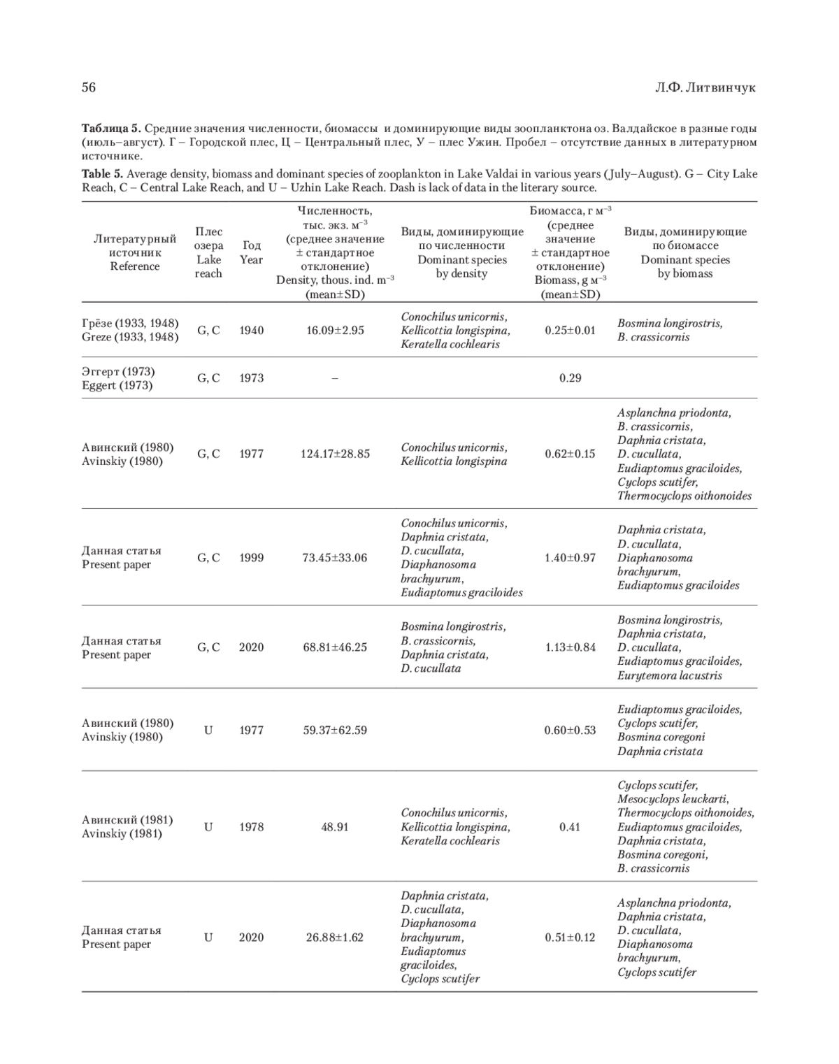 2. Avinskiy V.A. 1981. Zooplankton and its products in Lake Uzhin (Novgorod Region). Scientific Papers of GosNIORKh, 162-163: 149-163. [In Russian].