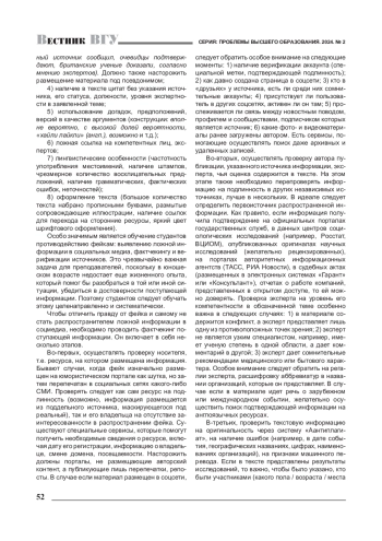 КУРГАНОВА Е. Б. ПЕДАГОГИКА ПРОТИВОДЕЙСТВИЯ ФЕЙКАМ В СОЦИАЛЬНЫХ МЕДИА В СИТУАЦИИ ПОСТПРАВДЫ // ВЕСТНИК ВОРОНЕЖСКОГО ГОСУДАРСТВЕННОГО УНИВЕРСИТЕТА. СЕРИЯ: ПРОБЛЕМЫ ВЫСШЕГО ОБРАЗОВАНИЯ. 2024. № 2