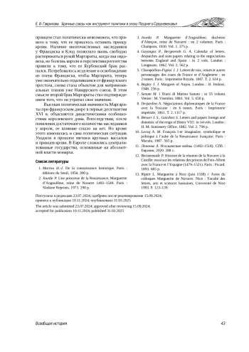 ГАВРИЛОВА Е. В. БРАЧНЫЕ СОЮЗЫ КАК ИНСТРУМЕНТ ПОЛИТИКИ В ЭПОХУ ПОЗДНЕГО СРЕДНЕВЕКОВЬЯ (НА ПРИМЕРЕ СУДЬБЫ МАРГАРИТЫ АНГУЛЕМСКОЙ) // ИЗВЕСТИЯ САРАТОВСКОГО УНИВЕРСИТЕТА. НОВАЯ СЕРИЯ. СЕРИЯ: ИСТОРИЯ. МЕЖДУНАРОДНЫЕ ОТНОШЕНИЯ. 2025. Т. 25 № 1