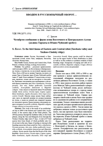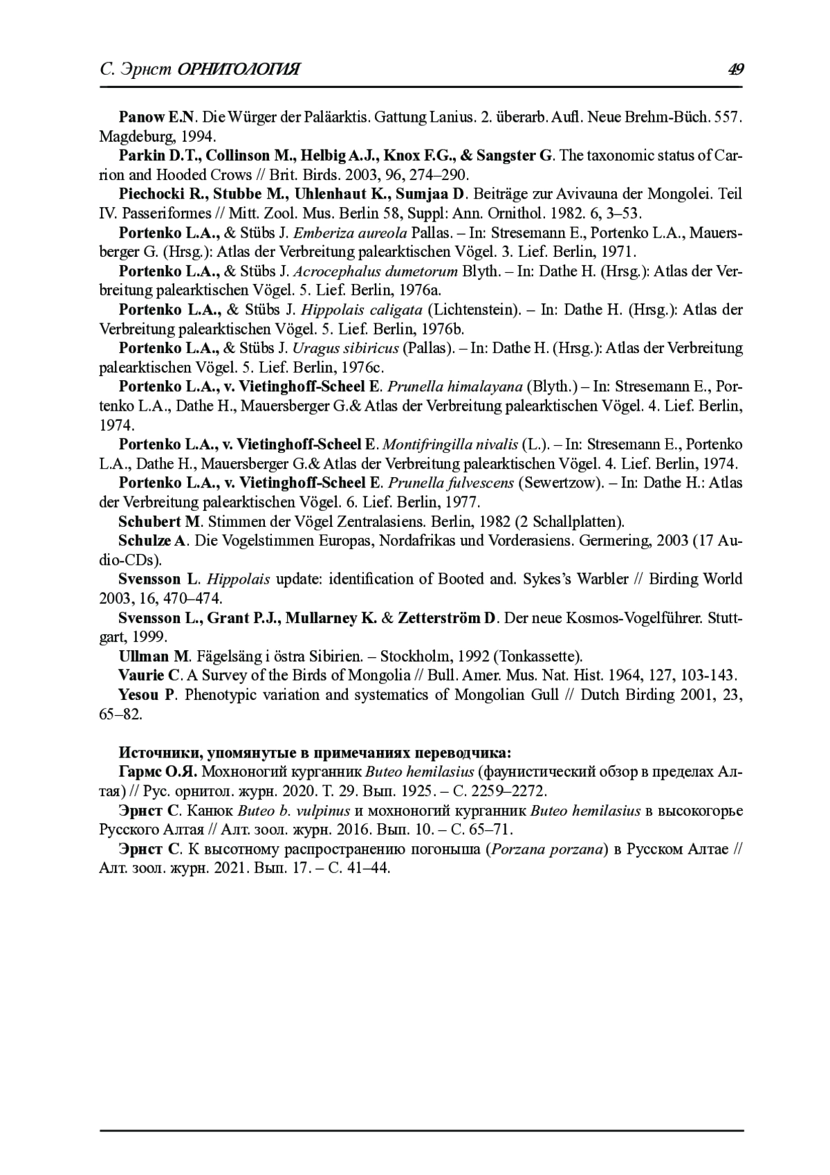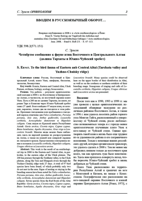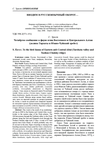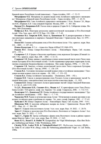 79. Ernst S. Zur Vogelwelt des ostlichen Altai // Ann. Ornithol. 1992, 16, 3-59.