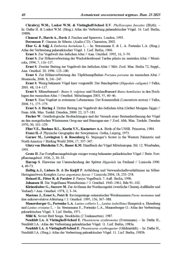 71. Эрнст С. К фауне птиц восточного Алтая // Алт. зоол. журн. Вып. 19. 2022. - С. 20-76.