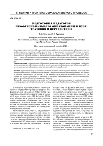 Качественное кадровое обеспечение среднего профессионального образования как никогда актуально, поскольку сегодня фактически не существует системы подготовки педагогов профессионального образования. Проблема поиска и обучения преподавателей и мастеров производственного обучения лежит на плечах руководства профессиональных образовательных организаций. Создание современной государственной системы подготовки педагогических кадров профессионального образования, в том числе в вузах, требует научного обоснования управленческих решений.