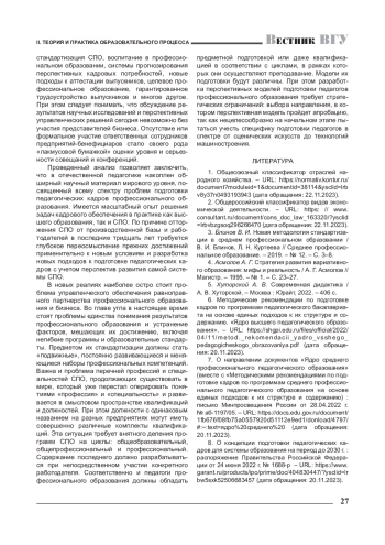 3. Блинов В. И. Новая методология стандартизации в среднем профессиональном образовании / В. И. Блинов, Л. Н. Куртеева // Среднее профессиональное образование. - 2019. - № 12. - С. 3-8. EDN: GKTCTG