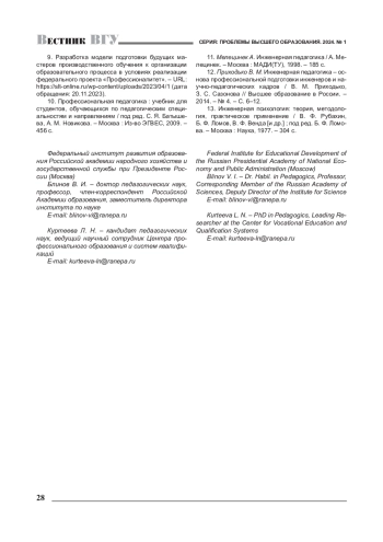 12. Приходько В. М. Инженерная педагогика - основа профессиональной подготовки инженеров и научно-педагогических кадров / В. М. Приходько, З. С. Сазонова // Высшее образование в России. -2014. - № 4. - С. 6-12. EDN: RZPTVR