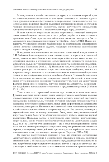 Статья: Этические аспекты манипулятивного воздействия в медиадискурсе: вызовы и перспективы (2025)