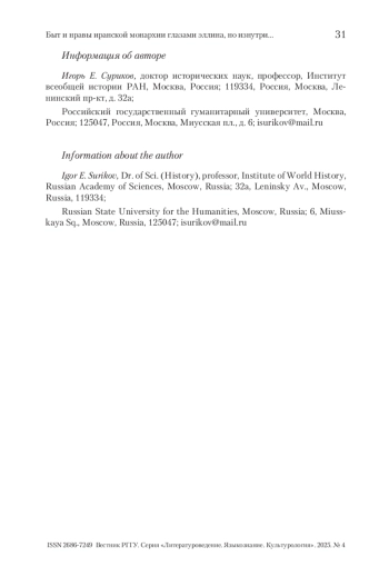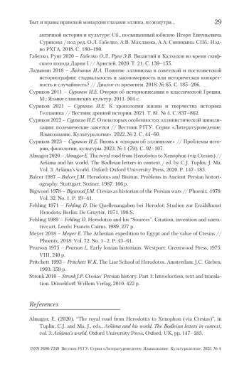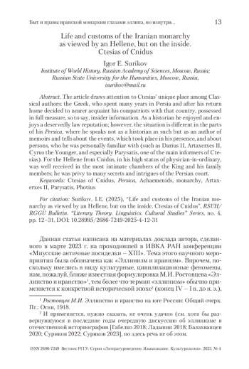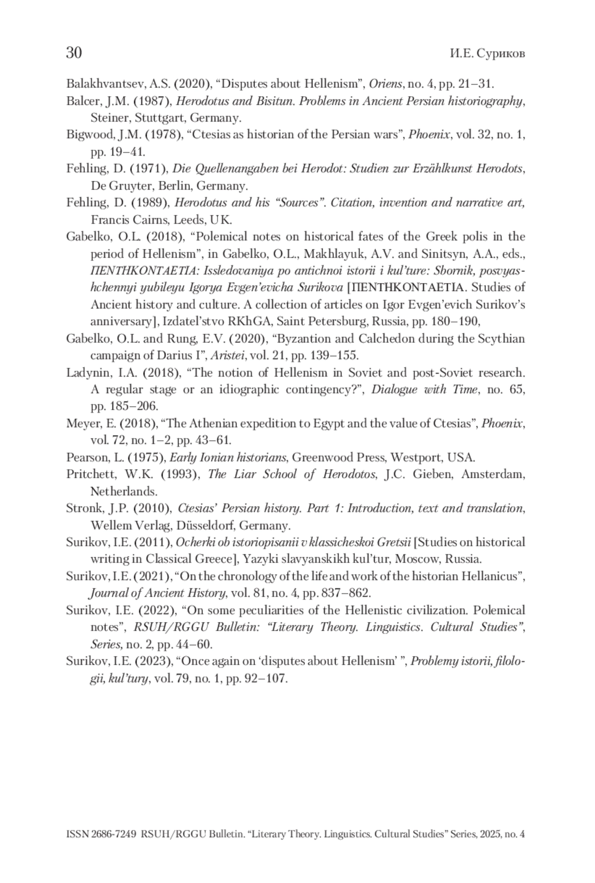 СУРИКОВ И.Е. БЫТ И НРАВЫ ИРАНСКОЙ МОНАРХИИ ГЛАЗАМИ ЭЛЛИНА, НО ИЗНУТРИ: КТЕСИЙ КНИДСКИЙ // ВЕСТНИК РГГУ. СЕРИЯ «ЛИТЕРАТУРОВЕДЕНИЕ. ЯЗЫКОЗНАНИЕ. КУЛЬТУРОЛОГИЯ». 2025. № 4