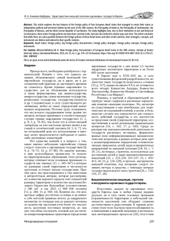 АЛИМОВА-НЕФЁДОВА М. Б. ОСНОВНЫЕ ХАРАКТЕРИСТИКИ ВНЕШНЕЙ ПОЛИТИКИ КАРЛИКОВЫХ ГОСУДАРСТВ ЕВРОПЫ В XX ВЕКЕ // ИЗВЕСТИЯ САРАТОВСКОГО УНИВЕРСИТЕТА. НОВАЯ СЕРИЯ. СЕРИЯ: ИСТОРИЯ. МЕЖДУНАРОДНЫЕ ОТНОШЕНИЯ. 2025. Т. 25 № 2