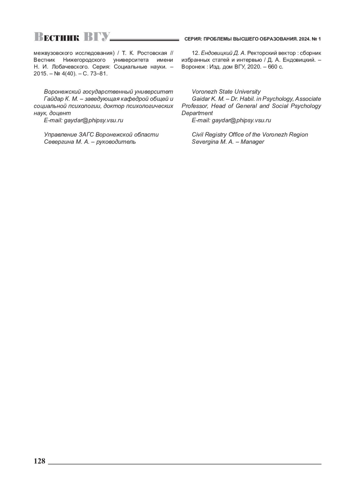 Журнал: ВЕСТНИК ВОРОНЕЖСКОГО ГОСУДАРСТВЕННОГО УНИВЕРСИТЕТА. СЕРИЯ: ПРОБЛЕМЫ ВЫСШЕГО ОБРАЗОВАНИЯ