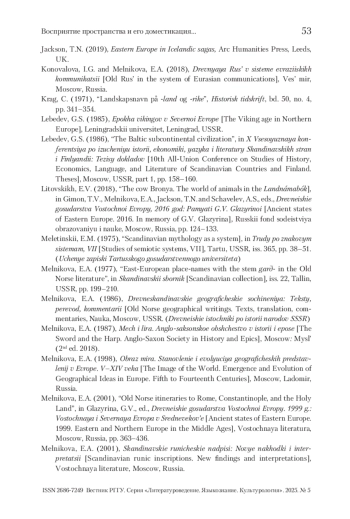 21. Мельникова 2014 - Мельникова Е.А. Древнескандинавские представления о пространстве в зеркале языка // Книга картины Земли: Сб. статей в честь И.Г. Коноваловой / отв. ред. Т.Н. Джаксон, А.В. Подосинов. М., 2014. С. 177-191.