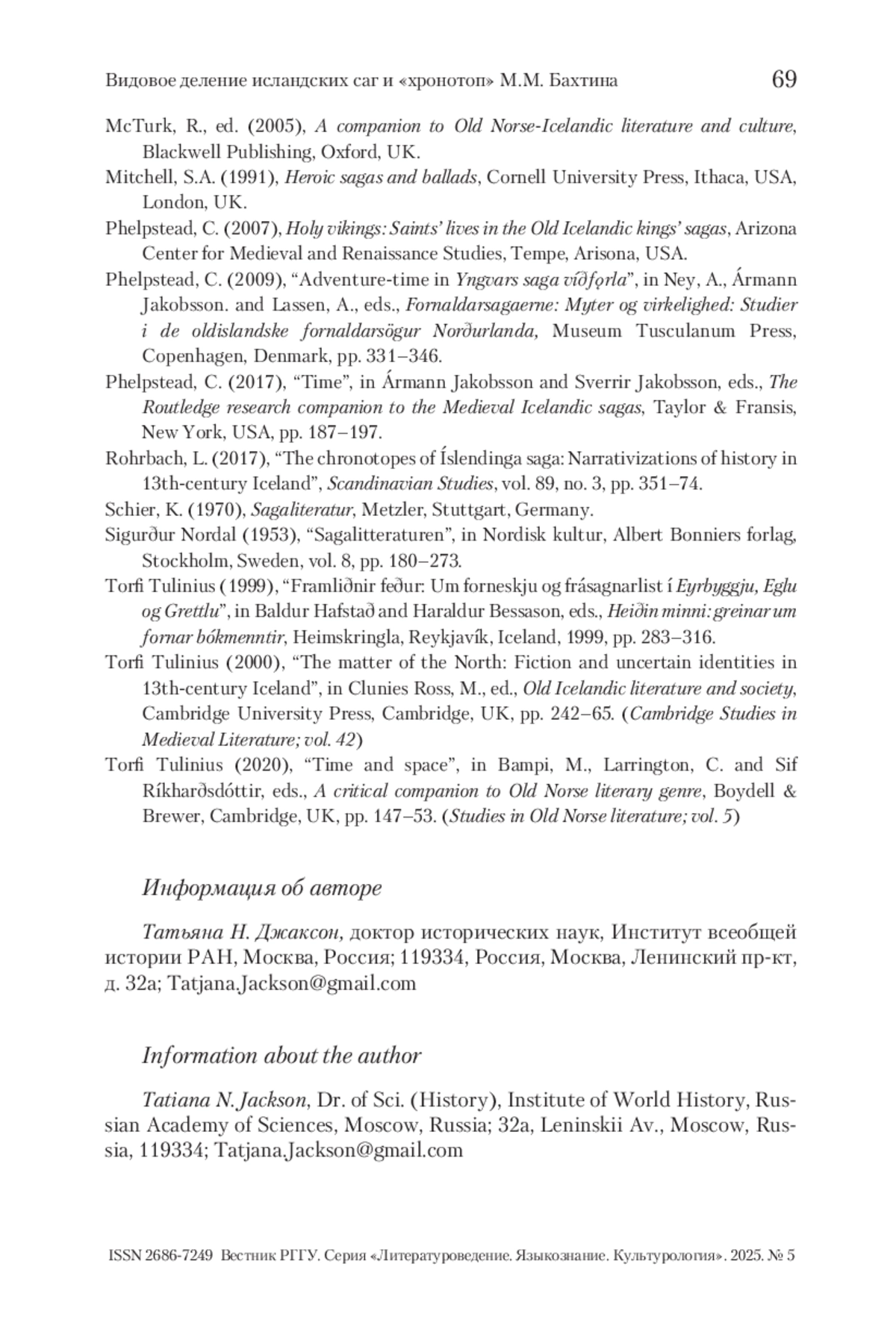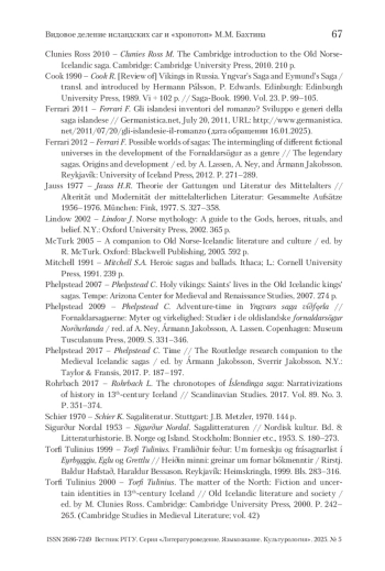 19. Rohrbach 2017 - Rohrbach L. The chronotopes of Íslendinga saga: Narrativizations of history in 13th-century Iceland // Scandinavian Studies. 2017. Vol. 89. No. 3. P. 351-374.