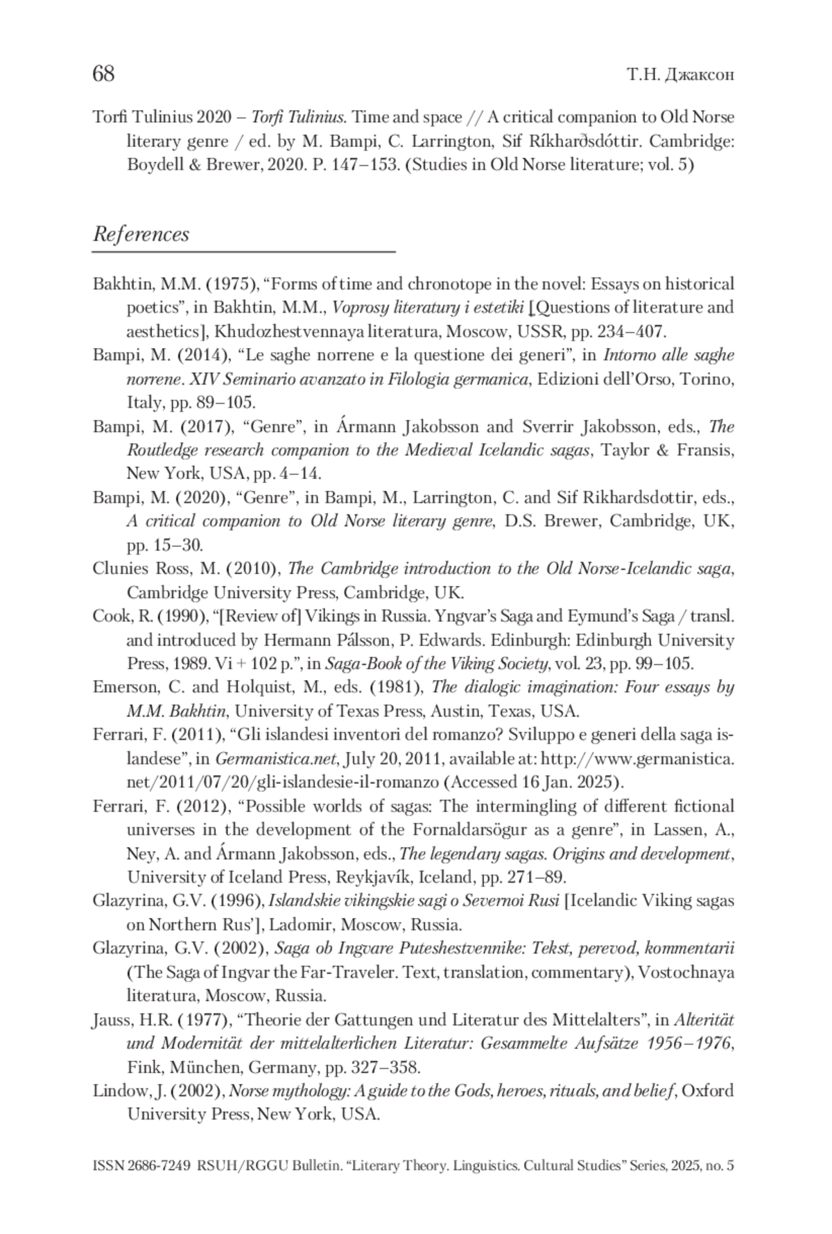 7. Bampi 2020 - Bampi M. Genre // A critical companion to Old Norse literary genre / ed. by M. Bampi, C. Larrington, Sif Rikhardsdottir. Cambridge: D.S. Brewer, 2020. P. 15-30.