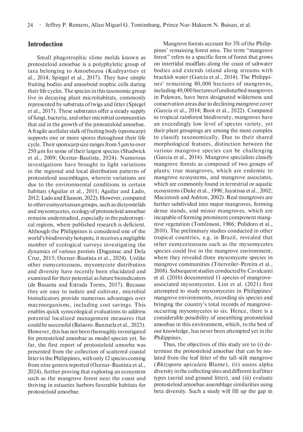 35. Ocenar-Bautista C.E., Balaoro-Banzuela R.C., Claudio-Paragas C.Y., Buebos-Esteve D.E. et al. 2024. First records of protosteloid amoebae isolated from coastal litter in the Philippines. Check List. 20 (2): 249-257. DOI: 10.15560/20.2.1