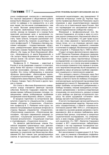 Ключевые фразы: ВОРОНЕЖСКИЙ ГОСУДАРСТВЕННЫЙ УНИВЕРСИТЕТ, социология, политическая наука, образование, в с рахманин