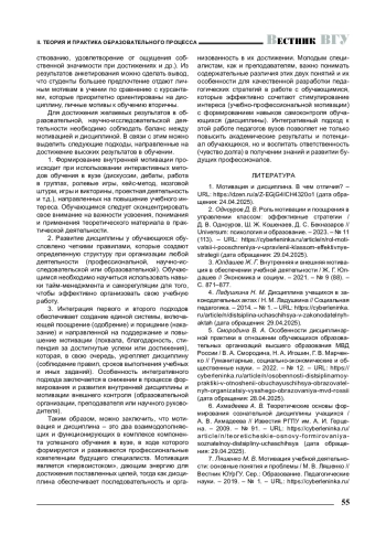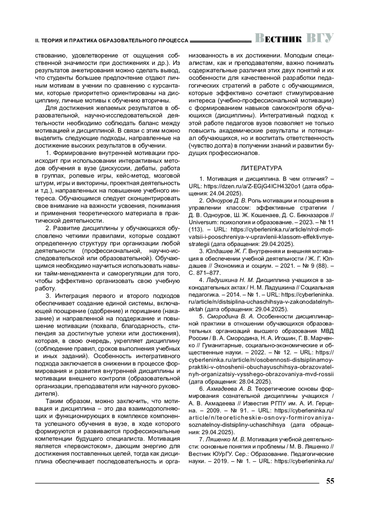 7. Ляшенко М. В. Мотивация учебной деятельности: основные понятия и проблемы / М. В. Ляшенко // Вестник ЮУрГУ. Сер.: Образование. Педагогические науки. - 2019. - № 1. - URL: https://cyberleninka.ru/article/n/motivatsiya-uchebnoy-deyatelnosti-osnovnye-ponyatiya-i-problemy (дата обращения: 29.04.2025).