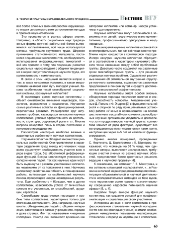 КОВТУНЕНКО Л. В., ПОЛЯКОВА Я. Н., ВИЛКОВА А. В. РОЛЬ НАУЧНОГО КОЛЛЕКТИВА КАК СУБЪЕКТА В ПРОФЕССИОНАЛЬНОМ СТАНОВЛЕНИИ МОЛОДОГО УЧЕНОГО // ВЕСТНИК ВОРОНЕЖСКОГО ГОСУДАРСТВЕННОГО УНИВЕРСИТЕТА. СЕРИЯ: ПРОБЛЕМЫ ВЫСШЕГО ОБРАЗОВАНИЯ. 2025. № 3