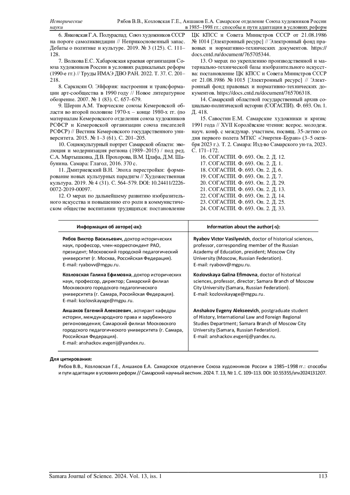 15. Савостин Е.М. Самарские художники и кризис 1991 года // XVII Королёвские чтения: всерос. молодеж. науч. конф. с междунар. участием, посвящ. 35-летию со дня первого полета МТКС “Энергия-Буран” (3-5 октября 2023 г.). Т. 2. Самара: Изд-во Самарского ун-та, 2023. С. 171-172. EDN: MLUWSY