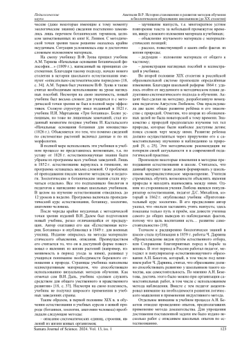 Статья: ИСТОРИЯ СТАНОВЛЕНИЯ И РАЗВИТИЯ МЕТОДОВ ОБУЧЕНИЯ В БИОЛОГИЧЕСКОМ ОБРАЗОВАНИИ ШКОЛЬНИКОВ (ДО XX СТОЛЕТИЯ) (2024)