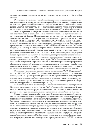 В статье отмечается, что Республика Мордовия по показателям инновационной деятельности в течение последних лет уверенно лидирует в Приволжском федеральном округе и Российской Федерации. Это диссонирует с общим проблемным состоянием пока еще депрессивного региона, но в то же время свидетельствует о наличии у него серьезного потенциала для роста и устойчивого развития. Курс на импортозамещение принципиально изменил и расширил направления создания и внедрения инноваций для отечественных разработчиков, стал исключительно привлекательным для представителей малого бизнеса. НИОКР в сфере малого предпринимательства характеризуется их высокой актуальностью и востребованностью, что определяется позиционированием малых предприятий и, соответственно, знанием проблем товарных и технологических рынков изнутри. Вместе с тем остается немало вопросов, требующих совершенствования системы поддержки разработки и внедрения инноваций в регионе, особенно в малом бизнесе. В статье обобщаются и анализируются основные результаты действующей региональной поддержки развития инновационной деятельности в малом бизнесе, формулируются и обосновываются конкретные предложения по ее совершенствованию.