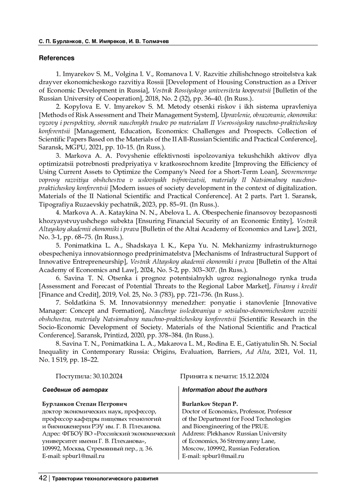 8. Savina T. N., Ponimatkina L. A., Makarova L. M., Rodina E. E., Gatiyatulin Sh. N. Social Inequality in Contemporary Russia: Origins, Evaluation, Barriers // Ad Alta. - 2021. - Vol. 11. - N 1 S19. - P. 18-22. References. EDN: UTNUIE