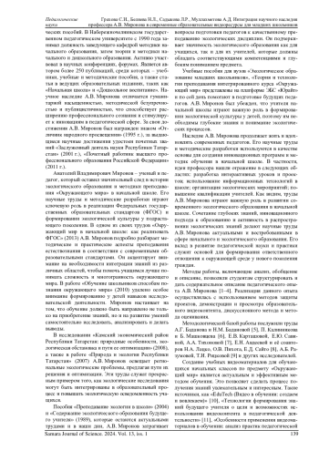В данной работе авторы раскрывают практическую значимость научных трудов почетного профессора Набережночелнинского государственного педагогического университета Анатолия Владимировича Миронова в контексте современного образования, демонстрируя инновационный подход к адаптации его теоретических концепций для создания цифровых образовательных ресурсов. Основная цель проекта - интегрировать исследования природных ресурсов и экологии Республики Татарстан в серию видеоматериалов для учеников начальной школы. Студенты, участвовавшие в проекте, не только осваивали технологии создания видео, но и углубляли свои познания в области педагогики, теории и технологии преподавания интегрированного курса «Окружающий мир», экологического образования младших школьников. Под руководством преподавателей будущие учителя изучали научные труды А. В. Миронова, адаптировали его методические рекомендации к созданию интерактивных и доступных для обучающихся начальной школы видеоконтентов. Проект успешно объединил теорию и практику, позволив будущим педагогам не только формировать профессиональные компетенции, но и развивать творческий потенциал. Использование видеоматериалов, основанных на научном наследии А. В. Миронова, способствует активизации учебного процесса, делая его более вовлекающим и интересным для младших школьников. Созданные видеоролики, отражающие экологию и природное богатство Татарстана, представляют собой ценный дополнительный материал к урокам изучения окружающего мира.
