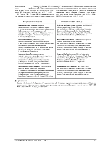 11. Новоселов Р.Ю., Савва Л.И., Савельев К.Н., Фридрихсон О.В. Технологии формирования знаний будущего учителя о цели и возможностях использования видеоконтента в педагогической деятельности // Современные проблемы науки и образования. 2023. № 3. С. 78-78. EDN: CMBCBU