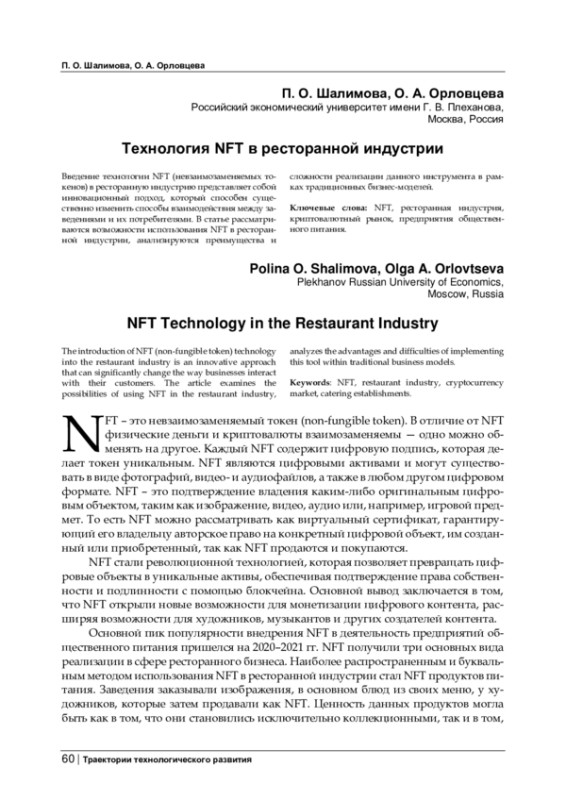 Введение технологии NFT (невзаимозаменяемых токенов) в ресторанную индустрию представляет собой инновационный подход, который способен существенно изменить способы взаимодействия между заведениями и их потребителями. В статье рассматриваются возможности использования NFT в ресторанной индустрии, анализируются преимущества и сложности реализации данного инструмента в рамках традиционных бизнес-моделей.