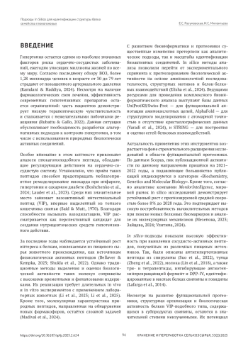 Выводы: Результаты подтверждают целесообразность использования in silico анализа для прогнозирования биоактивности пищевых белков и обосновывают дальнейшие in vivo исследования P01284 как антигипертензивного агента нутрицевтического профиля.