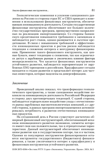 Статья: Анализ финансовых инструментов, обеспечивающих реализацию механизма инновационного развития экономики Российской Федерации (2025)