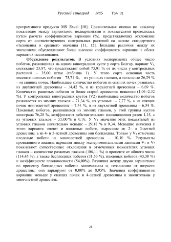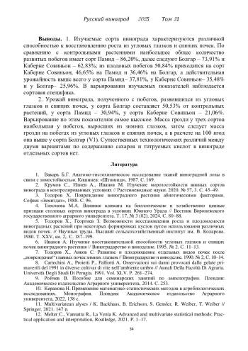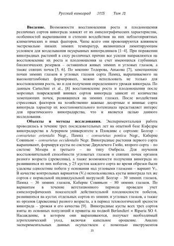 Статья: ВОССТАНОВИТЕЛЬНАЯ СПОСОБНОСТЬ УГЛОВЫХ ГЛАЗКОВ И СПЯЩИХ ПОЧЕК У ВИНОГРАДНЫХ СОРТОВ БОЛГАР, ПАМИД И КАБЕРНЕ СОВИНЬОН (2025)