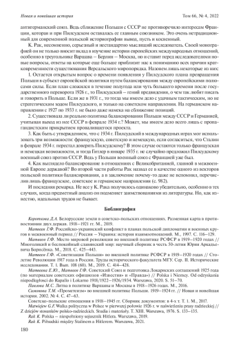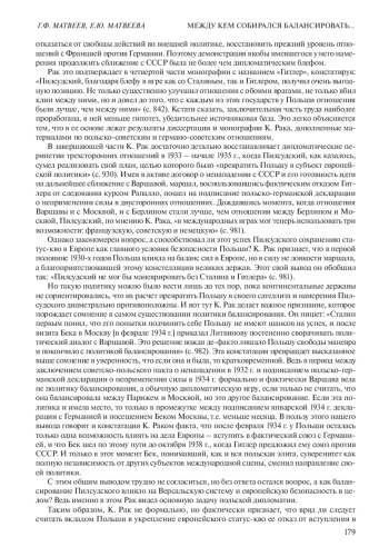 В 2021 г. независимый польский исследователь Кшиштоф Рак опубликовал монографию «Пилсудский между Сталиным и Гитлером», не оставшуюся незамеченной в Польше уже хотя бы в силу вынесенных на обложку книги фамилий трех политиков, сыгравших судьбоносную роль в судьбе поляков в первой половине ХХ в. Это не первая работа К. Рака, в 2019 г. из печати вышла его книга «Польша – несостоявшийся союзник Гитлера»1. Анализируемый объемный труд К. Рака, насчитывающий около 1000 страниц текста, хронологически охватывает период от преддверия Локарно до начала 1935 г. Он затрагивает множество сюжетов, каждый из которых тянет на самостоятельное исследование. В центре внимания автора – взаимоотношения в треугольнике Варшава – Берлин – Москва, но немало места занимает и анализ французского фактора в польской внешней политике