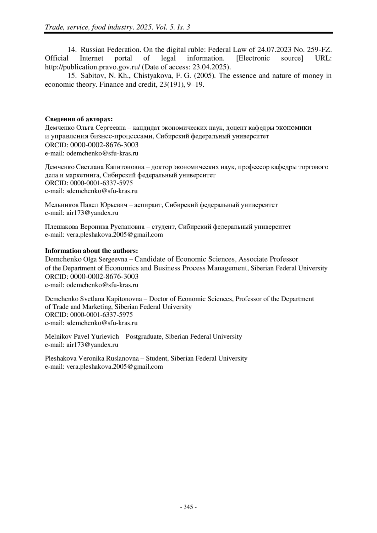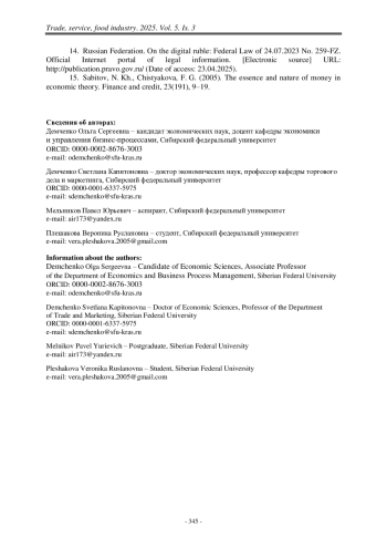 14. Российская Федерация. О цифровом рубле : Федеральный закон от 24.07.2023 г. № 259-ФЗ [Электронный ресурс] // Официальный интернет-портал правовой информации. – URL: http://publication.pravo.gov.ru/ (дата обращения: 23.04.2025).