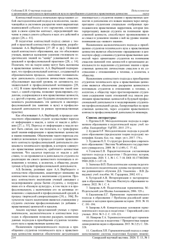 30. Беляева А.Б. Особенности воспитания студентов на основе контекстного подхода // Вестник Тамбовского университета. Серия: Гуманитарные науки. 2006. Вып. 3-1 (43). С. 303-306. EDN: NDEJRD