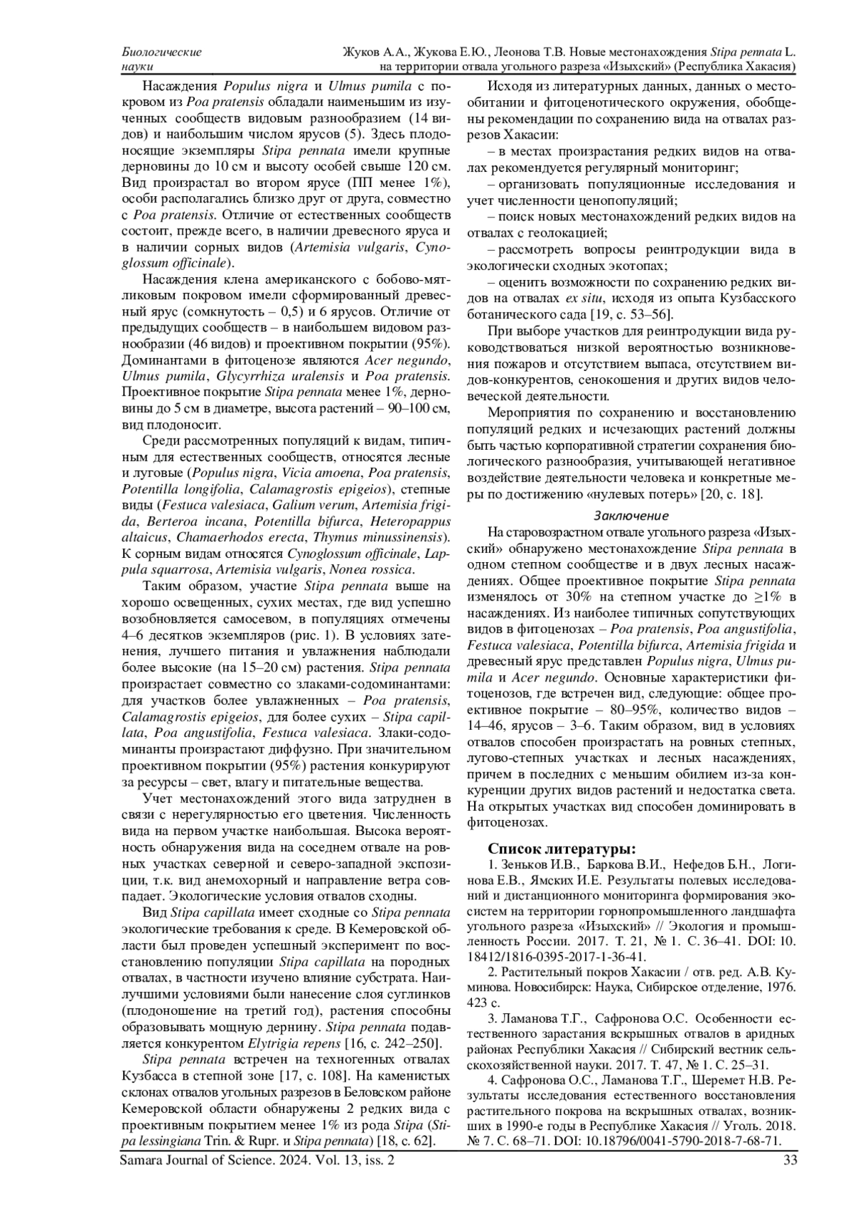 1. Зеньков И.В., Баркова В.И., Нефедов Б.Н., Логинова Е.В., Ямских И.Е. Результаты полевых исследований и дистанционного мониторинга формирования экосистем на территории горнопромышленного ландшафта угольного разреза “Изыхский” // Экология и промышленность России. 2017. Т. 21, № 1. С. 36-41. DOI: 10.18412/1816-0395-2017-1-36-41 EDN: XWRYNP
