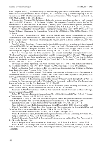 26. Religion and the Cold War / ed. D. Kirby. Basingstoke, 2003.