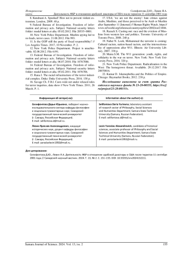5. Al-Matrafi H.B. A century of Arab-Americans: from immigrants to citizens // People: International Journal of Social Sciences. 2017. Vol. 3, № 1. P. 436-452. DOI: 10.20319/pijss.2017.s31.436452