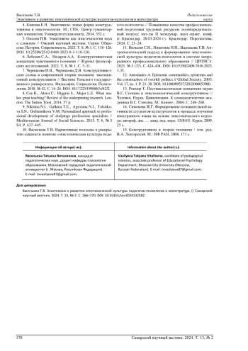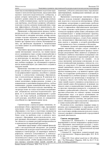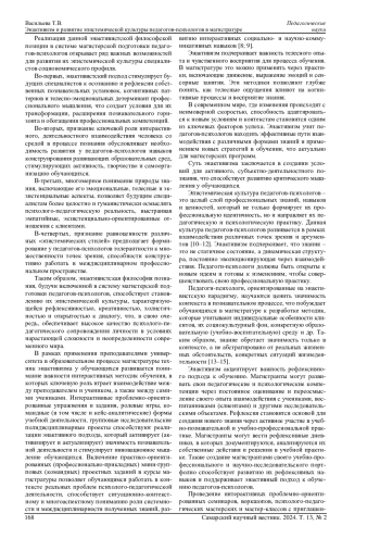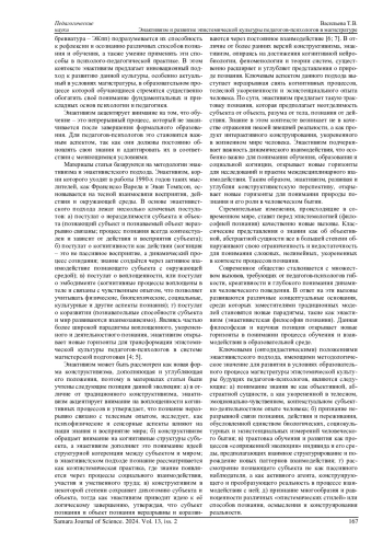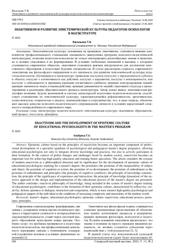ВАСИЛЬЕВА Т. В. ЭНАКТИВИЗМ И РАЗВИТИЕ ЭПИСТЕМИЧЕСКОЙ КУЛЬТУРЫ ПЕДАГОГОВ-ПСИХОЛОГОВ В МАГИСТРАТУРЕ // САМАРСКИЙ НАУЧНЫЙ ВЕСТНИК. 2024. ТОМ 13, № 2