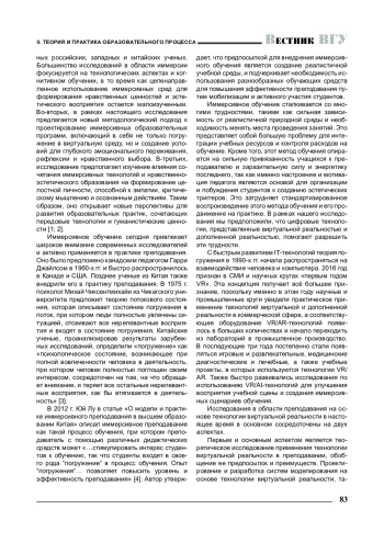 4. 余璐, 周超飞. 论我国高等教育中的沉浸教学模式与实践 //河南社会科学. - 2012. - Т. 20, № 6. -С. 78-80. [Юй Лу. О способе и практике иммерсивного обучения в высшем образовании Китая / Лу Юй,Чаофэй Чжоу // Социальные науки Хэнани. - 2012. -Т. 20, № 6. - С. 78-80.].