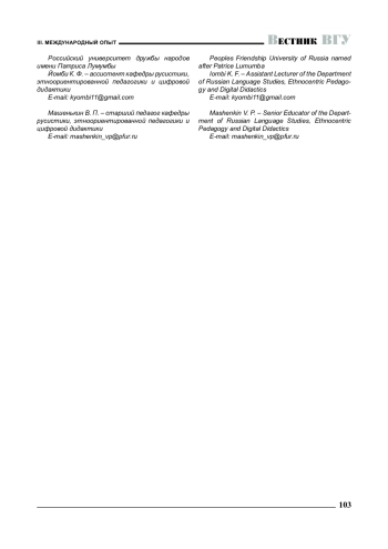 Статья посвящена исследованию специфики африканского образования в доколониальный период. Диахронический анализ позволяет глубже взглянуть на тогдашнее состояние образования на континенте, обусловленное культурно-историческими факторами. Результаты научного поиска, изложенные в статье, вносят вклад в развитие не только исторической педагогики, но и методики преподавания африканцам русского языка как иностранного с учетом этнокультурных аспектов местных образовательных практик. Их применение актуально в рамках поддержки иностранных студентов, проходящих социокультурную адаптацию в неродной образовательной среде российской высшей школы.