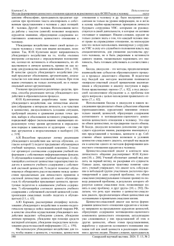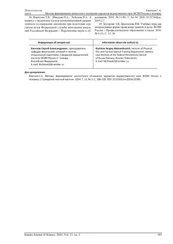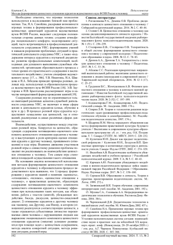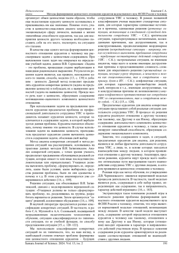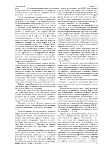 КЛЫЧКОВ С. А. МЕТОДЫ ФОРМИРОВАНИЯ ЦЕННОСТНОГО ОТНОШЕНИЯ КУРСАНТОВ ВЕДОМСТВЕННОГО ВУЗА ФСИН РОССИИ К ЧЕЛОВЕКУ // САМАРСКИЙ НАУЧНЫЙ ВЕСТНИК. 2024. ТОМ 13, № 2